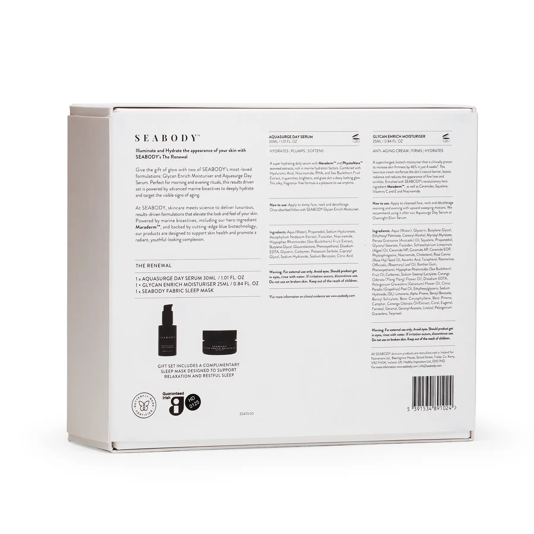 - Give the gift of glow with two of Seabody’s most-loved formulations: Glycan Enrich Moisturiser and Aquasurge Day Serum. Perfect for morning and evening rituals, This results-driven set is powered by advanced marine bioactives to deeply hydrate and target the visible signs of aging.